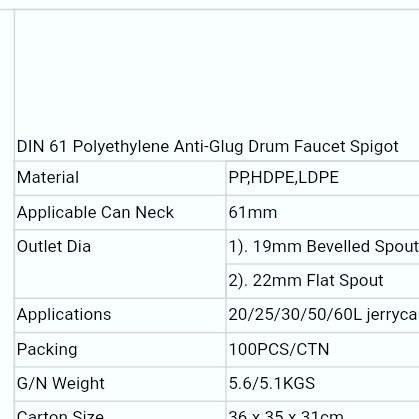 Tappehane til brug ved manuel tapning fra DIN 61 dunke typisk 20 liter og 25 liters dunke. Tjek specifikationer på billedet.